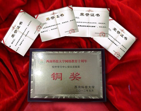 2012年5月8日,西南科技大学在四川绵阳召开了“网络教育试点10周年庆典”大会,我校继续教育学院院长作为校外学习中心代表参加了大会。会上为表彰十年来在西南科技大学网络教育各项工作中做出突出贡献的学习中心和个人,充分发挥优秀学习中心和先进个人的示范作用,进一步推动网络教育健康、可持续的发展,西南科技大学授予我上海学习中心“校外学习中心突出贡献奖”、“校外学习中心依托建设单位领导支持奖”、“校外学习中心优秀负责人奖”、“校外学习中心招生先进个人”以及“校外学习中心教学教务先进个人”五项荣誉称号。