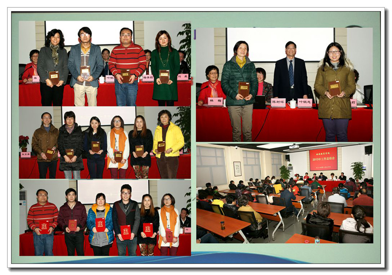 会议首先由学院陆李莉书记宣读了2013年度各类奖项表彰名单。学院领导分别为获奖人员颁发了荣誉证书和奖励金。而后获奖代表考试与培训部倪越、教育发展中心吴涵韵、远程教育部金巧巧同志分别进行了交流发言。