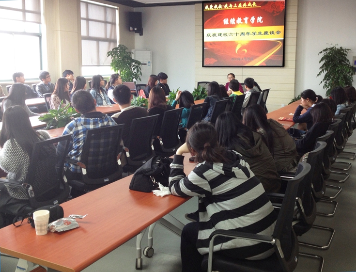 4月25日下午,继续教育学院“我爱我校•我与上应共成长”学生座谈会在多功能会议室举行。此次座谈会系继续教育学院组织的庆祝建校六十周年系列活动之一,特邀优秀校友代表、我校2006届毕业生柳青与大家分享个人的成长与发展。学院团总支学生会成员、党校学员、“畅想青春•展望未来”征文比赛获奖代表等40余人参加了座谈会。