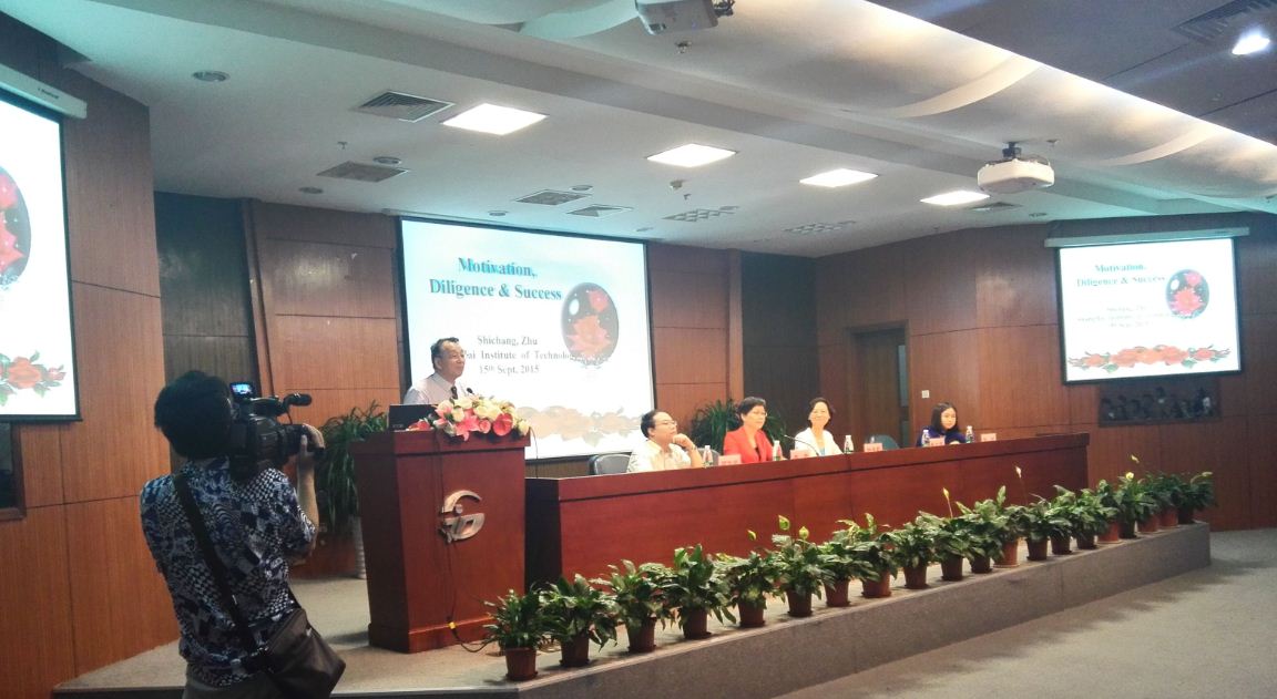 朱士昌教授代表国际教育中心致欢迎词。朱教授以“Motivation、Diligence & Success为题,用中、英双语形式,表达了对2015级新生殷切的期望,鼓励同学们志存高远、脚踏实地,刻苦学习、快乐生活。李博士以梦想为主题,作了精彩的主旨发言,寄语全体新生,从上海应用技术学院起航,早日实现自己的“中国梦”和“家族梦”。随后,教师代表刘迁老师、老生代表孙琪然、新生代表胡怡雯分别从语言教学、学习体会、新学期展望等方面作了发言。