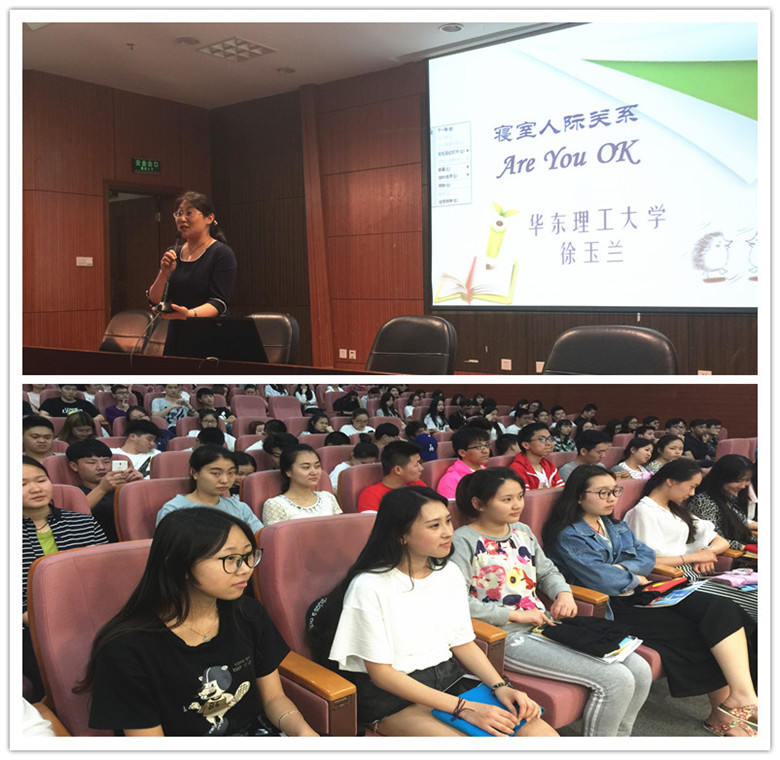 5月23日,学院邀请华东理工大学的心理咨询老师徐玉兰为同学们开设了专题心理学讲座。徐老师从新生角度出发,就人际交往中的“寝室交往”与同学们展开了深入的剖析,探讨了如何适应集体生活、如何疏导自身的不良情绪以及如何经营室友间的亲密关系。