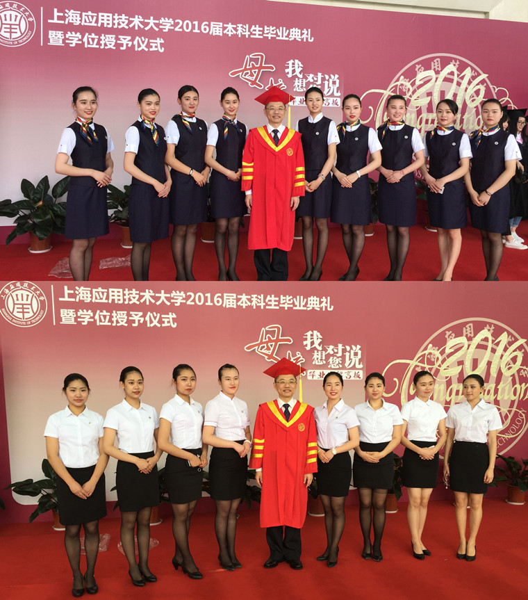 6月28日,上海应用技术大学2016届本科生毕业典礼在奉贤校区体育馆隆重举行。继续教育学院礼仪队受邀参加了此次典礼的礼仪服务工作,见证了3742名本科毕业生从母校出发,开启人生新的征程。 继续教育学院礼仪队为毕业庆典特别推选了17名学生,姑娘们深感责任重大,在日常训练之外,还特别在队长带领下额外增加了训练强度。典礼当日,礼仪队姑娘们甜美的微笑、优雅的身姿、靓丽的制服给毕业典礼增添了一道美丽的风景。 本次活动也给同学们提供了良好的锻炼平台,学院航空服务专业的姑娘们,在一次次地奉献中,积累经验、提升自我,在职业空乘之路上又迈进了一步。 继续教育学院学办 2016年6月28日