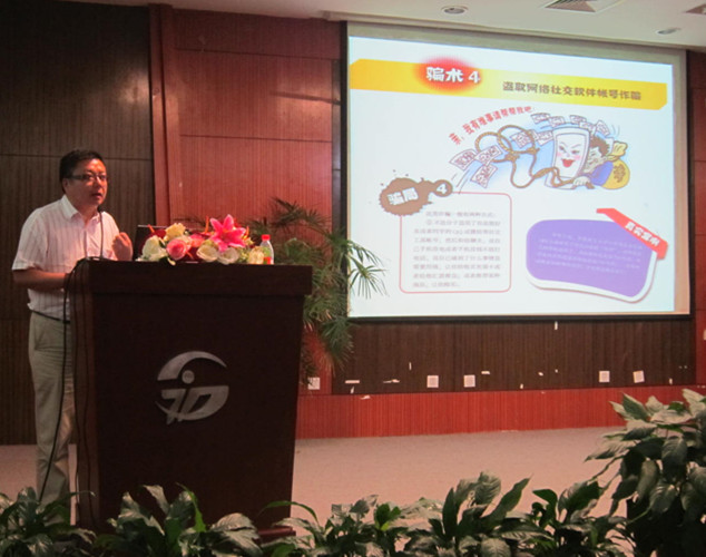 杨军为全体新生作了入学安全教育。他通过学校、社会上发生的一系列真实的安全问题案例,向大家讲解了预防盗窃、诈骗以及交通、消防、旅行、信息等方面的安全防范常识。一件件真实的案例引起了同学们的强烈反响,纷纷表示在今后的学习、生活中要提高安全防范意识,保护好自身人身及财产安全。