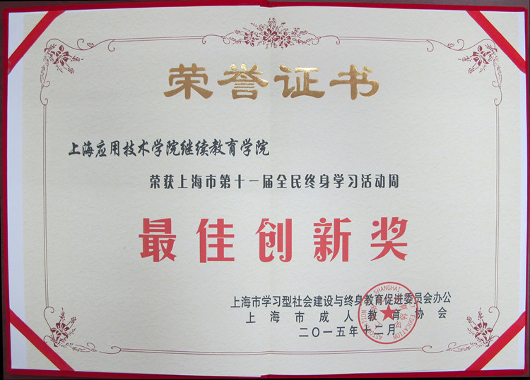 我院在由上海市学习型社会建设与终身教育促进委员会办公室和上海市成人教育协会举办的主题为“终身学习,创新发展”的第十一届全民终身学习活动周中,荣获“最佳创新奖”殊荣。