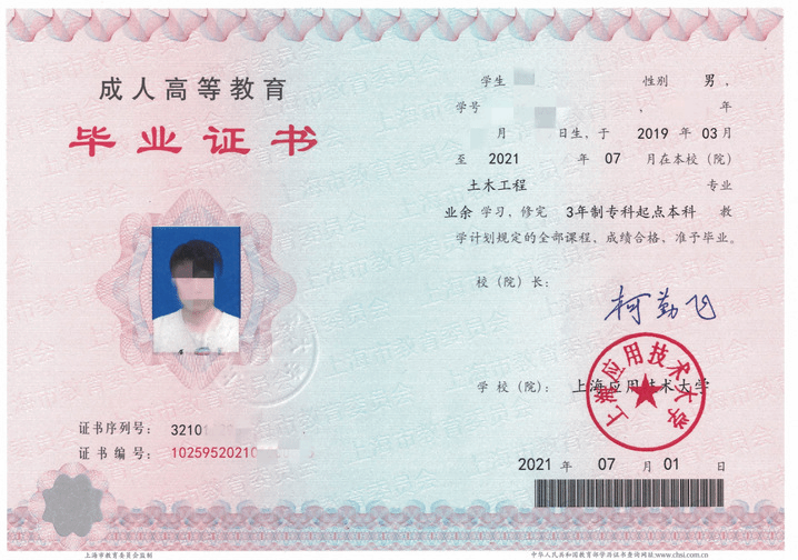 1.凡通过上海成人高校招生统一考试被正式录取,在有效学习年限内,符合学籍管理规定,修满教学计划规定的全部课程且成绩合格者,颁发教育部电子注册的上海市成人高等教育毕业证书,符合学位条件者可申请学士学位证书。