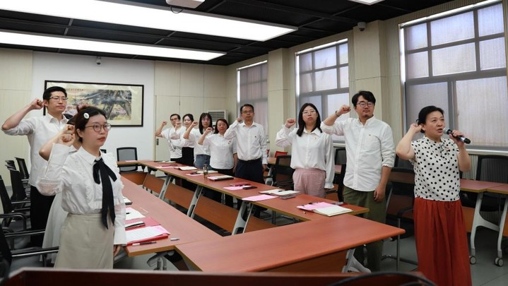 在李晓晶院长的领誓下,全体党员庄严地重温了入党誓词:“我志愿加入中国共产党……永不叛党!”铮铮誓言,铿锵有力,彰显着党员们对党的无限忠诚。