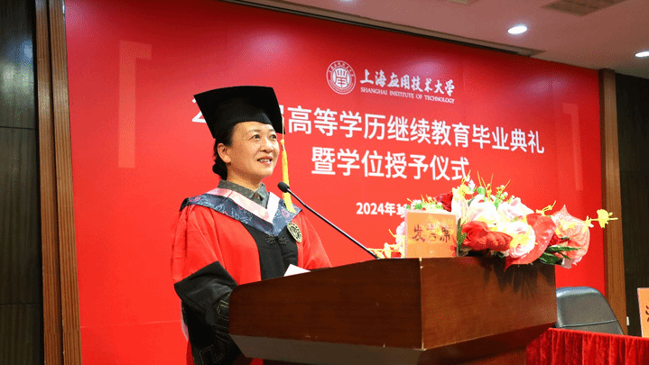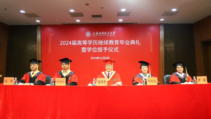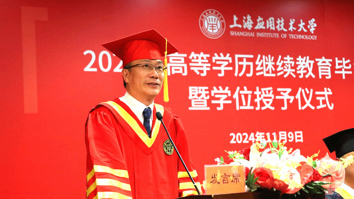 11月9日上午,上海应用技术大学2024届高等学历继续教育毕业典礼暨学位授予仪式在徐汇校区图书馆116报告厅隆重举行。副校长毛祥东出席并讲话,继续教育学院院长李晓晶、直属党支部书记毕劲松、副院长沈刚、罗瑾,教师代表、2024届毕业生代表及亲属300多人齐聚一堂,共同见证这个难忘的时刻。副院长沈刚主持毕业典礼。