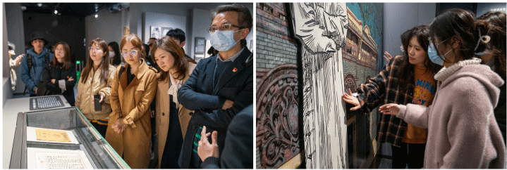 在展厅里,一封封烈士的家书、一本本泛黄的日记令我们为之动容;龙华二十四烈士雕塑在光影变化中变成了一场沉浸式多媒体剧,生动再现龙华二十四烈士身处的革命岁月,思政铸魂与艺术教育深度融合,师生们得到了触及灵魂深处的文化洗礼。