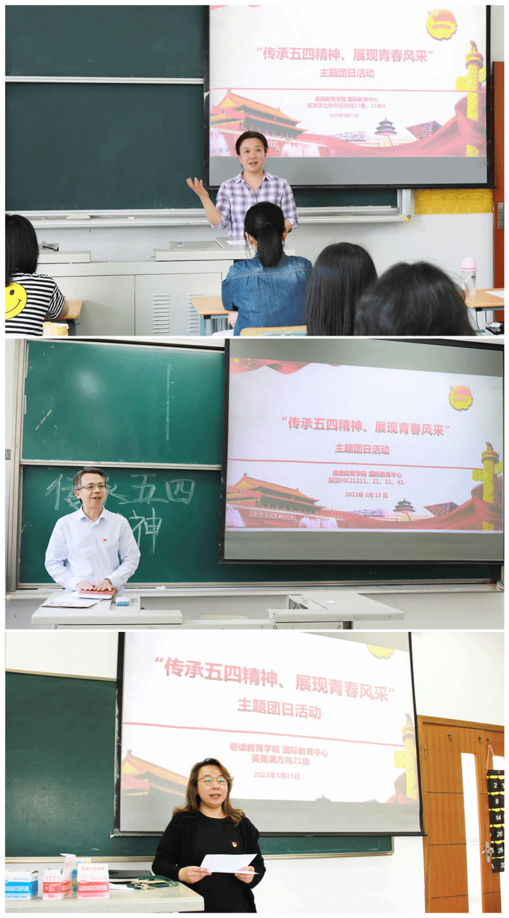 为深入学习贯彻习近平新时代中国特色社会主义思想和党的二十大精神,激励和动员青年学生继承和发扬“五四精神”。在纪念“五四运动”104周年之际, 继续教育学院、国际教育中心开展“传承五四精神,展现青春风采”为主题的团支部活动。