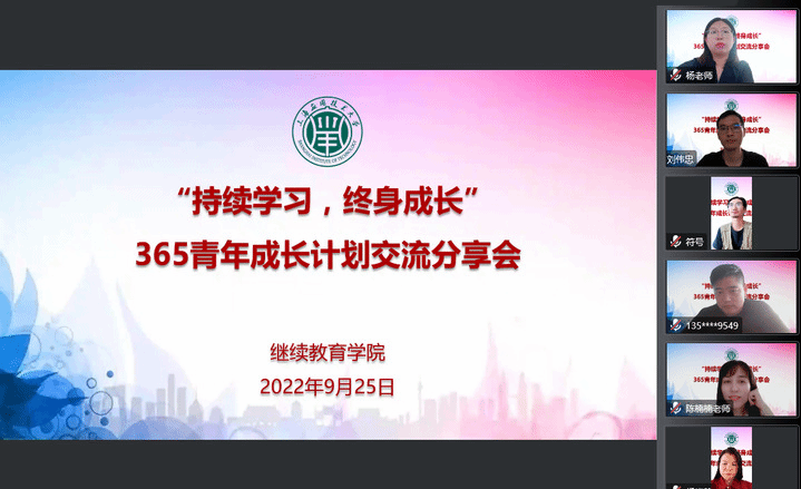 9月25日下午,继续教育学院举办了“持续学习 终身成长”365青年成长计划交流分享会。学院直属党支部书记毕劲松和学历教育部相关负责老师、教师代表以及高等学历继续教育学生代表共计50余人参加了交流分享会。