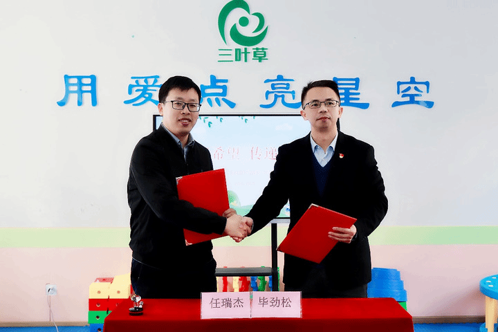 毕劲松代表学院与徐汇区三叶草儿童康健园签署了合作共建协议。他在致辞中向儿童康健园全体老师表达了敬意,并表示学院将会根据共建协议,推动志愿服务活动不断延伸,让更多的人正确认识这些“星星的孩子”,让孩子们感受到来自社会越来越多的关爱和温暖。