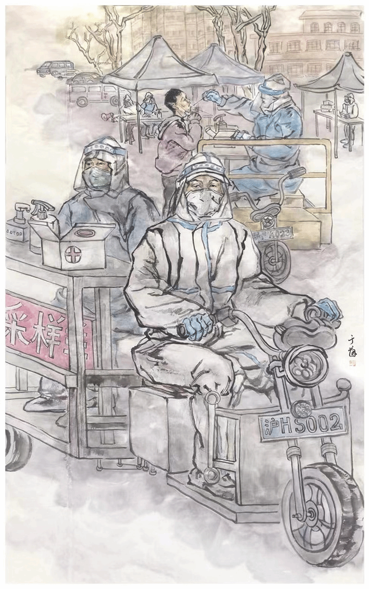 作品理念:自核酸检测工作开展以来,社区里经常看到三轮车,“大白”骑着心爱的小摩托,穿梭于小区各个楼道进行移动式核酸采样,“拉风”又“能干”。