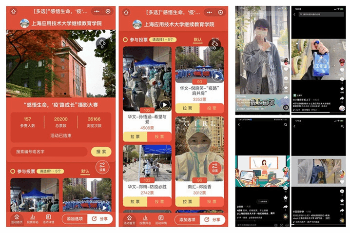 图7 摄影大赛网络投票、抖音短视频创作大赛学生作品