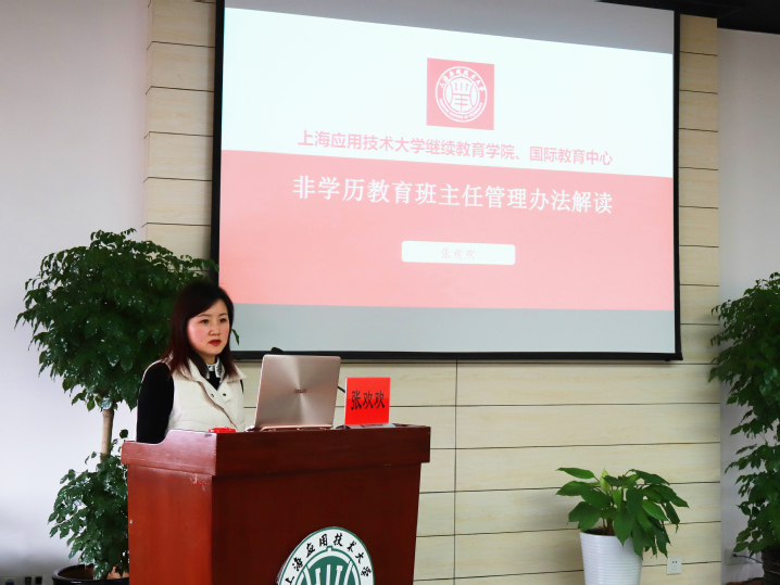 学院综合事务中心主任、学工部主任张欢欢就新颁布的《继续教育学院、国际教育中心非学历班主任管理办法》进行解读,并对《班主任考核细则》进行了逐一分析,要求班主任进一步关注学生思想动态、培养学生良好的学风意识和生活习惯。