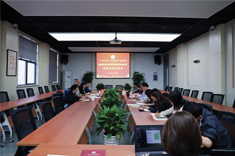 10月22日下午,张锁怀副校长出席指导继续教育学院“不忘初心牢记使命”主题教育领导班子调研成果交流会。学校主题教育第九检查组组长张淑梅、成员宋明枫,学校主题教育第七巡导组成员唐桂玲出席。继续教育学院党政班子成员参加调研成果交流会,并就各自负责的调研课题进行汇报交流。