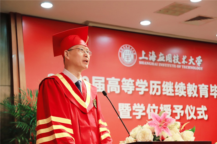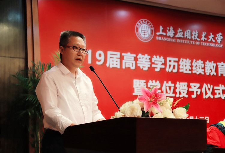 7月13日,上海应用技术大学2019届高等学历继续教育毕业典礼暨学位授予仪式在徐汇校区隆重举行。副校长张锁怀出席并讲话,继续教育学院和各校外学习站点近300名师生参加了典礼。