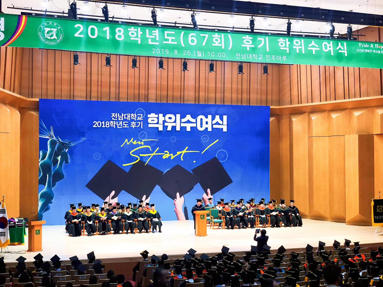 8月26日上午,韩国国立全南大学2018届工商管理硕士(MBA)毕业典礼暨授位仪式在丽水校区隆重举行,我校与韩国国立全南大学合作培养的首届中文MBA硕士留学生全部顺利毕业。我校国际教育中心相关负责教师受邀出席,与合作方共同见证了学子们学业有成、为校争光的重要时刻。