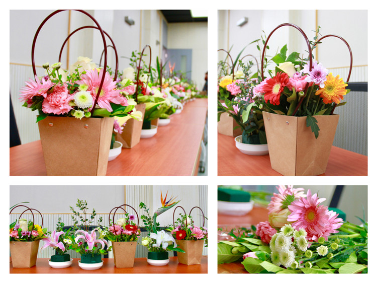 活动邀请了有22年花艺经验的老师为大家讲授插花知识,从花材、容器、色彩搭配等方面介绍了插花的艺术造型要素和技巧手法,并现场指导大家学做了清丽活泼的韩式插花和优雅别致的日式插花。活动过程中,大家充分享受了与花草自然的灵性交流,又在互相观摩中彼此欣赏与赞美。
