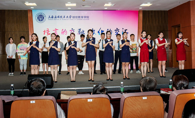 6月27日下午,我院在徐汇校区图书馆举办主题为“语言的交融,文化的交汇”航空服务项目教学成果展示活动,沈刚副院长、李玉梅教授出席,相关部门负责人及航空服务项目的300余名学生参加。