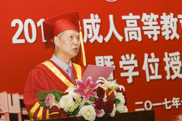 典礼上宣读了《2017届成人高等教育本科毕业生学士学位授予决定》、《关于表彰2017届成人高等教育优秀毕业生的决定》。2017届毕业生代表、2016年上海市成人高校“十佳学习标兵”、优秀毕业生获得者费持力同学和教师代表张珂老师先后在典礼上发言。