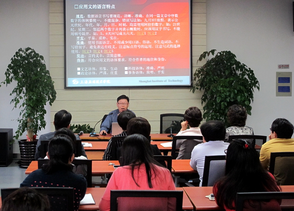 董老师为大家详细讲解了各种应用文的写法和要点,并以我院网页上的应用文为实例,现场剖析写作中出现的问题,提出改进方法。董老师还例举了各类范文供大家学习借鉴,让大家更直观真切地体会到应用文写作既有基本固定的文体模式,对行文格式、用语等有规范性的要求,又要简单明了突出主题,注意语境的把握和文字的提炼。最后董老师提醒大家要结合工作的实际,慎思笃行,勤学多练,才能写好应用文。