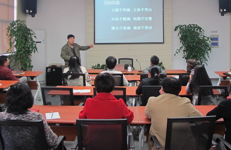 朱老师带领大家从欣赏经典好照片出发,引出一张好照片的要素和技术要求并进行了详细讲解;从新闻摄影的六大要素,对工作中经常遇到的会议、活动等新闻题材的拍摄提出了具体要求;他以众多的实例照片来展现新闻照片中常见的问题,并现场进行分析、修正,以直观的效果让大家感悟新闻照片的基本要素;最后,他还对手机摄影进行了指导,并鼓励大家平时多拍照,多分析,学点照片的后期处理,拍出好的照片,为工作和生活添彩。