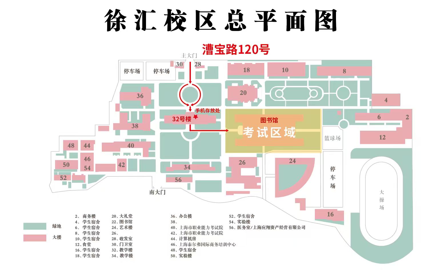 2. 本次考试安排在我校徐汇校区的考生(以准考证上的座位号信息为准)请注意: