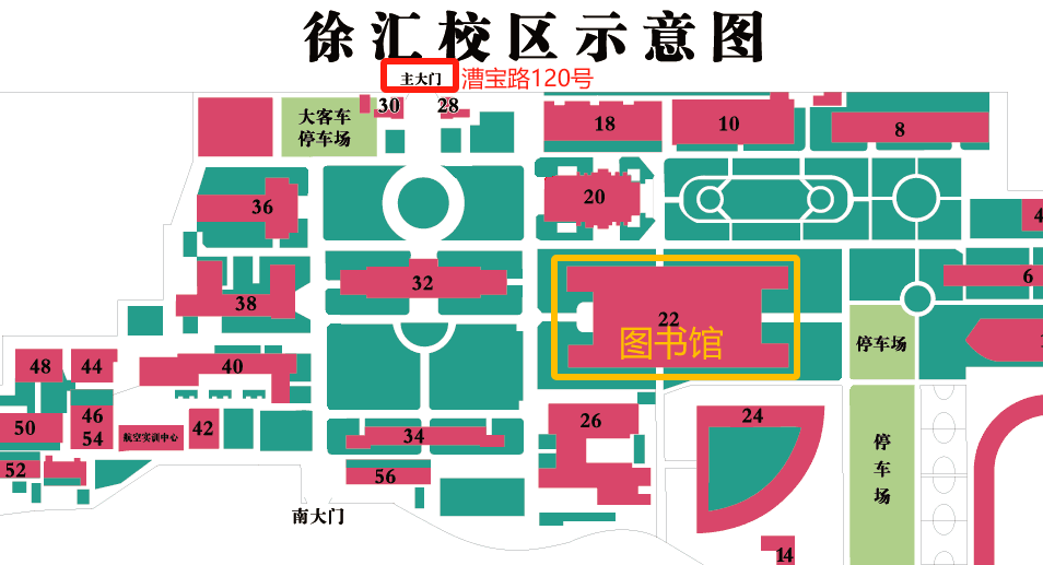 考试地点图书馆位置(黄色方框标注)