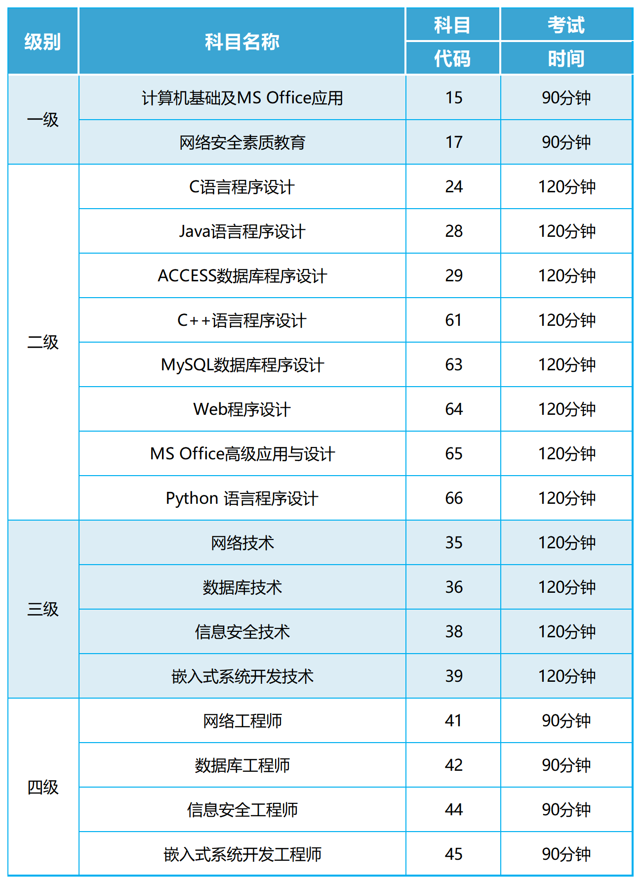 1.《NCRE级别科目设置及证书体系》