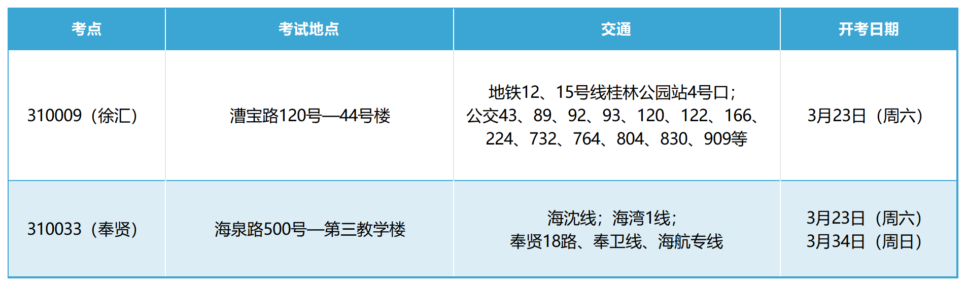 提醒:本次考试徐汇校区考点(310009)仅3月23日(周六)开考