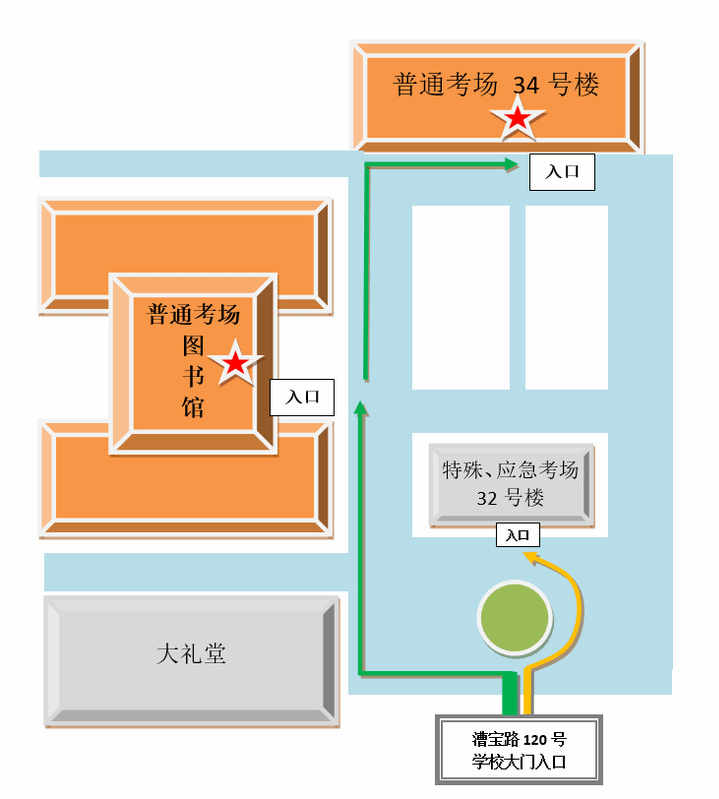 友情提醒:考前无法提前进校查看考场。考试当天请从漕宝路120号进入学校,其余校门都会关闭,普通考场、特殊考场分区进入,每位考生的考场类型在考场查询中已做标注。