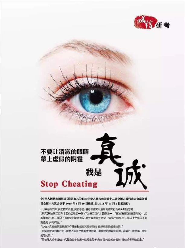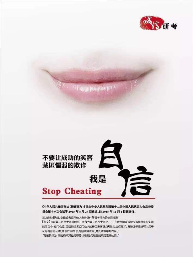 本考点郑重提醒:诚信者天不负,金榜题名谱新篇;作弊者法网缚,身陷囹圄坠深渊。