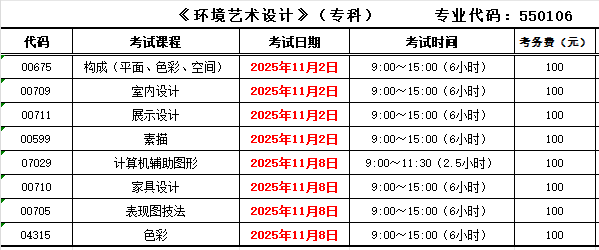 4. 《环境设计》《环境艺术设计》专业技能考试为连续6小时,中途不得离开考场,请考生自备饮食。