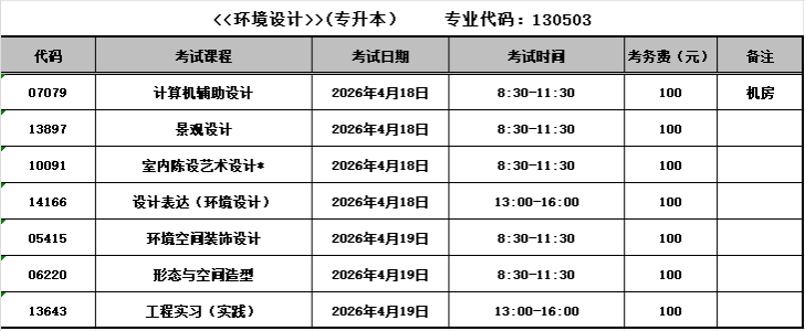 4. 《环境设计》、《环境艺术设计》专业技能考试为连续3小时,中途不得离开考场。