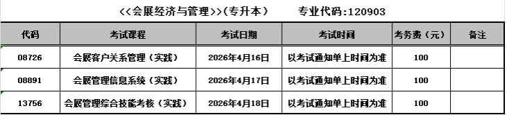 5. 《会展策划与管理》(专科)、《会展经济与管理》(专升本)的新生不得报考实践类课程。