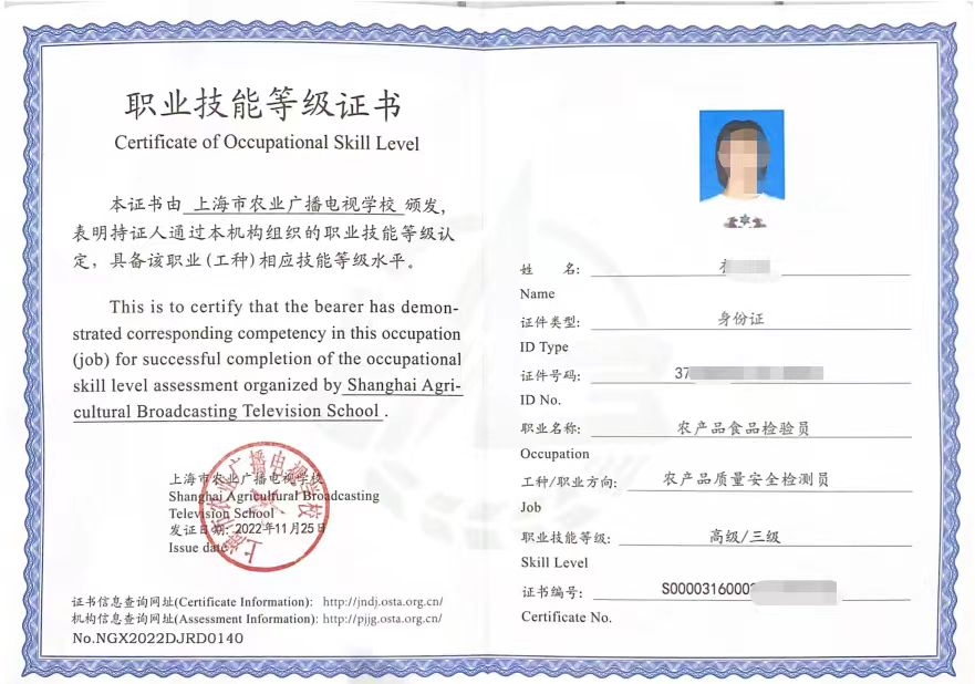 农产品食品检验员高级证书是国家人力资源和社会保障部颁发的正式职业技能等级证书,具有权威性和公信力,被业内广泛认可和接受。证书涵盖了农产品食品检验员所需的各方面知识和技能,通过考取证书可以提升自身的职业素养和专业技能水平,该证书更是企事业用人的重要参考依据,考取证书能为自身就业、晋升增加巨大的竞争优势。