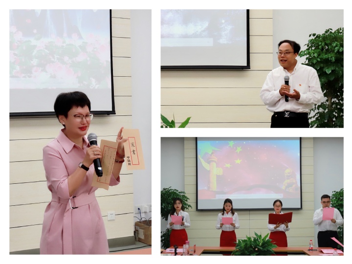 “我志愿加入中国共产党,拥护党的纲领,遵守党的章程……”全场所有党员在张锁怀副校长的带领下,面向党旗,庄严宣誓,重温了对党忠诚的铮铮誓言,表达了“不忘初心跟党走”的信念和决心。