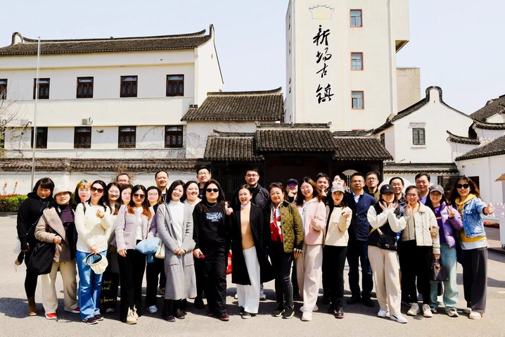 享受完鲜花盛宴后,一行人乘兴前往新场古镇。古镇风貌古朴典雅,温婉秀丽,明清古建筑工艺精湛、雕梁秀柱,街道两旁商铺林立,售卖着各种古法小吃和非遗手工艺品。大家漫步在青石板路上,体验千年盐都的独特魅力与风土人情。